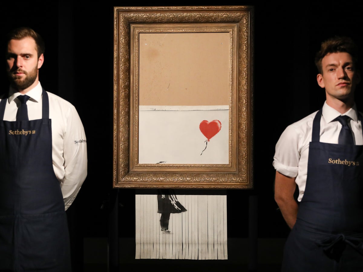 Banksy Sets Auction Record With 18 5m Sale Of Shredded Painting Banksy The Guardian